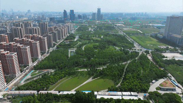 目及之处皆是绿意。百万方的桃浦地方绿地,说实话草坪的工整度是我参不雅过项目中数一数二的,公园道质量已是“开箱”形态,